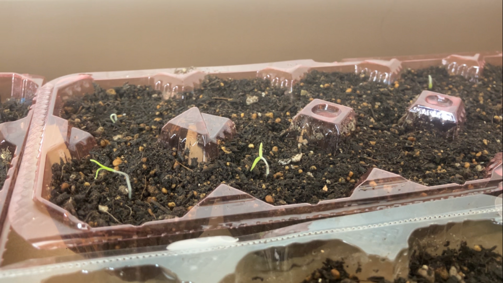 まだ寒い日や風のある日があるので日中に暖房を入れているからか、一週間ほど過ぎて芽が出てきました(о´∀`о)