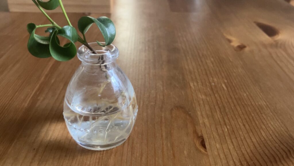 そして新しくまた一輪挿しに入れておいたら、やはり根っこが出てきました。