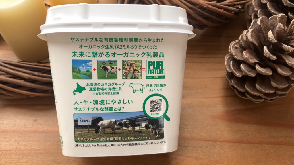 オーガニック生乳(A2ミルク)を使用した、なめらかで濃厚なヨーグルト、ピュアナチュールオーガニックヨーグルト。